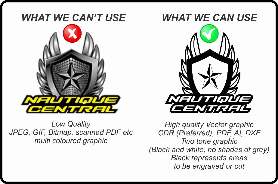 Below is a guide on what the best options are for us undertake your engraving work with customer supplied artwork. This is a guide only and under certain circumstances, your art work may still not be suitable.